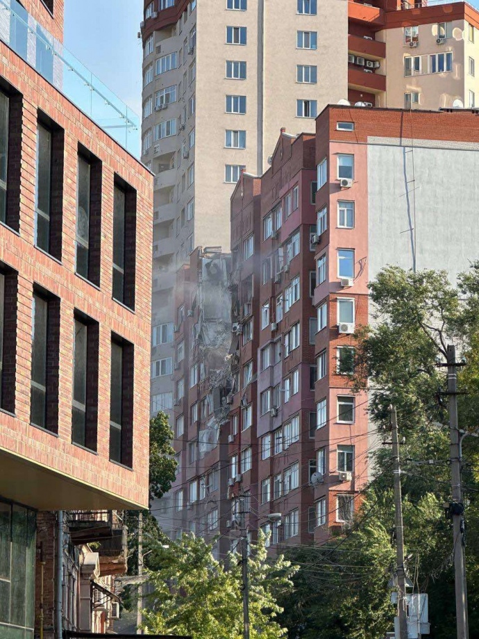 Пряма мова: "Ворог вчинив ракетну атаку на Дніпро. Пошкоджена дев'ятиповерхівка. Там руйнування кількох поверхів. Попередньо, є поранені".
