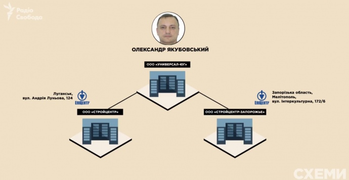 Так, Якубовський співволодіє компанією "Стройцентр-Запорожье", яка зареєстрована за законодавством РФ в окупованому Мелітополі на вулиці Єкатерини Великої, 172/6. Це адреса колишнього "Епіцентру" (до вторгнення російської армії вулиця мала назву називалася Інтеркультурною).