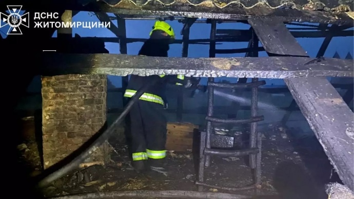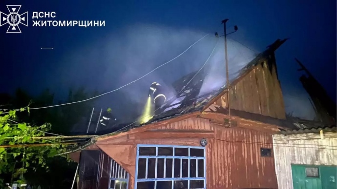 На Житомирщині уламки дрона впали на будинок: спалахнула пожежа, є постраждала