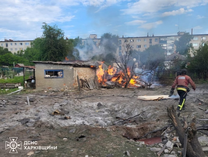 Деталі: У населеному пункті пошкоджені житлові будинки та господарчі приміщення. Виникли пожежі.