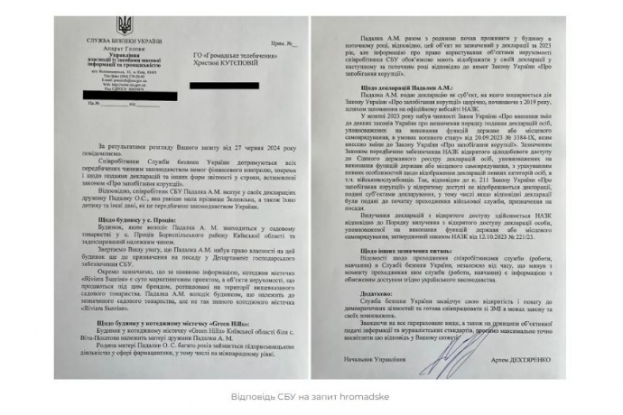Відповідно співробітник СБУ Падалка А.М. вказує у своїх деклараціях дружину Падалку О.С., яка раніше мала прізвище Зеленська, а також їхню дитину та інші дані, як це передбачено законодавством України.
