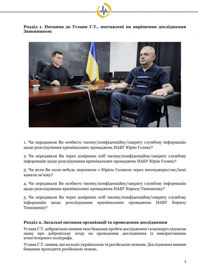 Перший заступник директора НАБУ Гізо Углава заявив, що пройшов за власною ініціативою поліграф і висновок свідчить про те, що він не причетний до витоку інформації слідства з бюро.