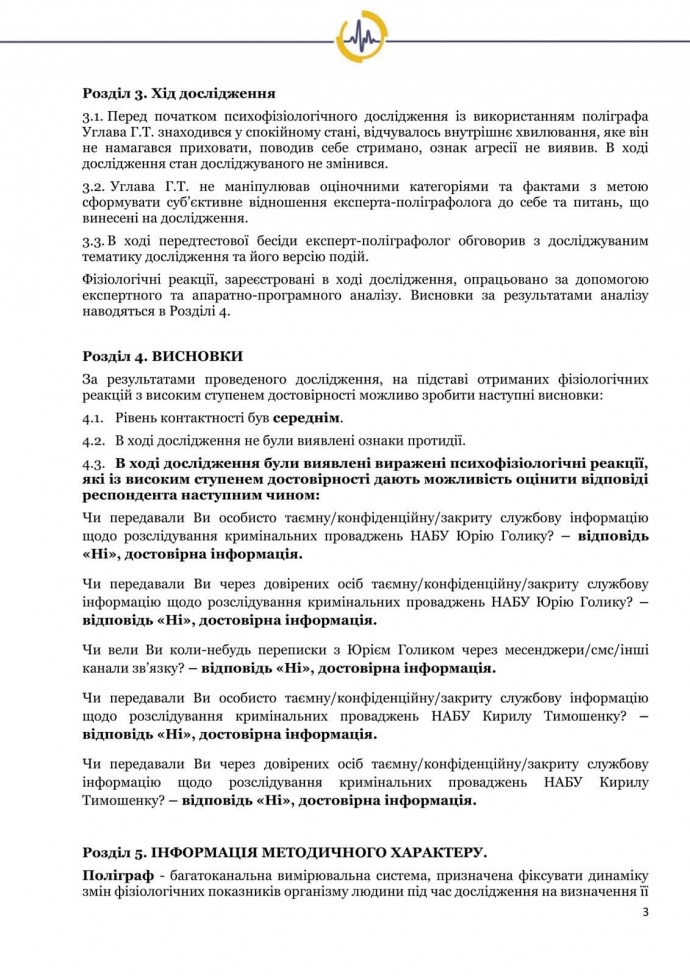 Поліграф для підтвердження правдивості моїх показів та моєї позиції проходив з власної ініціативи, оскільки задекларована мною вимога щодо його необхідності не була почута та врахована".