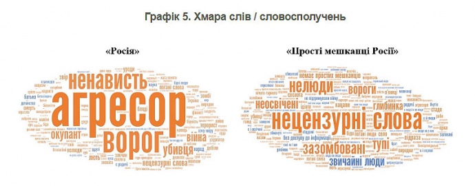 "Росія" в українців викликає такий асоціаційний ряд: "агресор", "ворог", "ненависть", "окупант", "убивця", "війна", "нецензурні слова", "нелюди", лють".