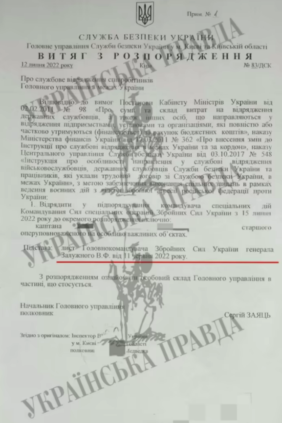 Пряма мова: "Коли Залужний підписував цю санкцію, то паралельно написав лист до СБУ, в якому просив із метою проведення спільних заходів відрядити їхнього співробітника, щоб він зайшов у групу і виконував свою частину роботи.