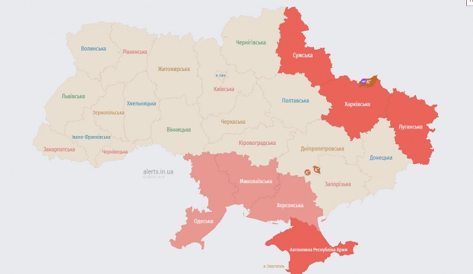 Доповнено: Станом на 10:30 сирени лунають у Сумській, Харківській та Луганській областях.