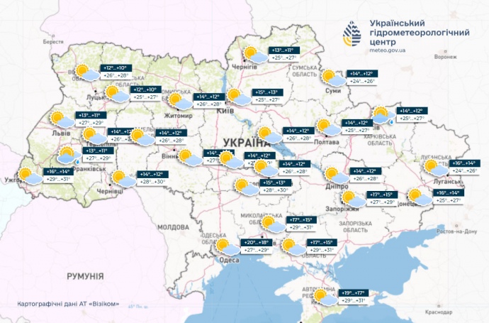 Деталі: У четвер вночі 10-17°С, на південному заході країни до 20°С, вдень 15 серпня 24-29° С, на Закарпатті та у південній частині 30-32°С.
