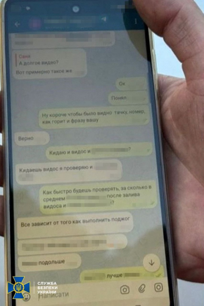 Чоловіки шукали автомобілі військових, фотографували їх та надсилали світлини своєму "куратору" в Telegram. Після погодження цілі вони купували рідину для підпалу та чекали ночі, щоб виконати завдання.