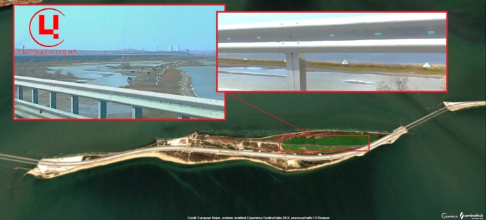 На південній частині острова Тузла виявили російські системи протиповітряної оборони, зокрема самохідний ЗРК "Панцир-С1", розміщений під мостом.