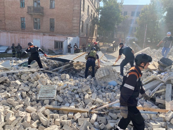 Деталі: Зазначається, що пошукові роботи тривають. Окрім адмінбудівлі, загарбники понівечили 23 приватні будинки і 3 дев’ятиповерхівки. А ще – навчальний заклад. Пошкоджені понад вісім десятків авто. З них 8 – службових.