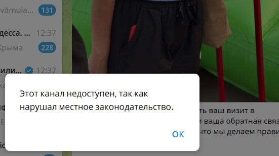 Деталі: У разі намагання відкрити ці канали, з’являється напис "Канал недоступний, оскільки порушував місцеве законодавство".