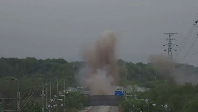 Пряма мова Об'єднаного комітету начальників штабів: "Північна Корея підірвала частини доріг Кьонгі і Донхе на північ від військової демаркаційної лінії близько полудня".