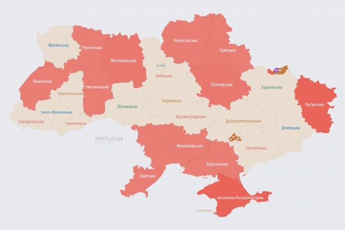 Увечері 24 жовтня російська армія запустила ударні безпілотники на територію України. У кількох областях працювала протиповітряна оборона. Повітряна тривога тривала цілу ніч.