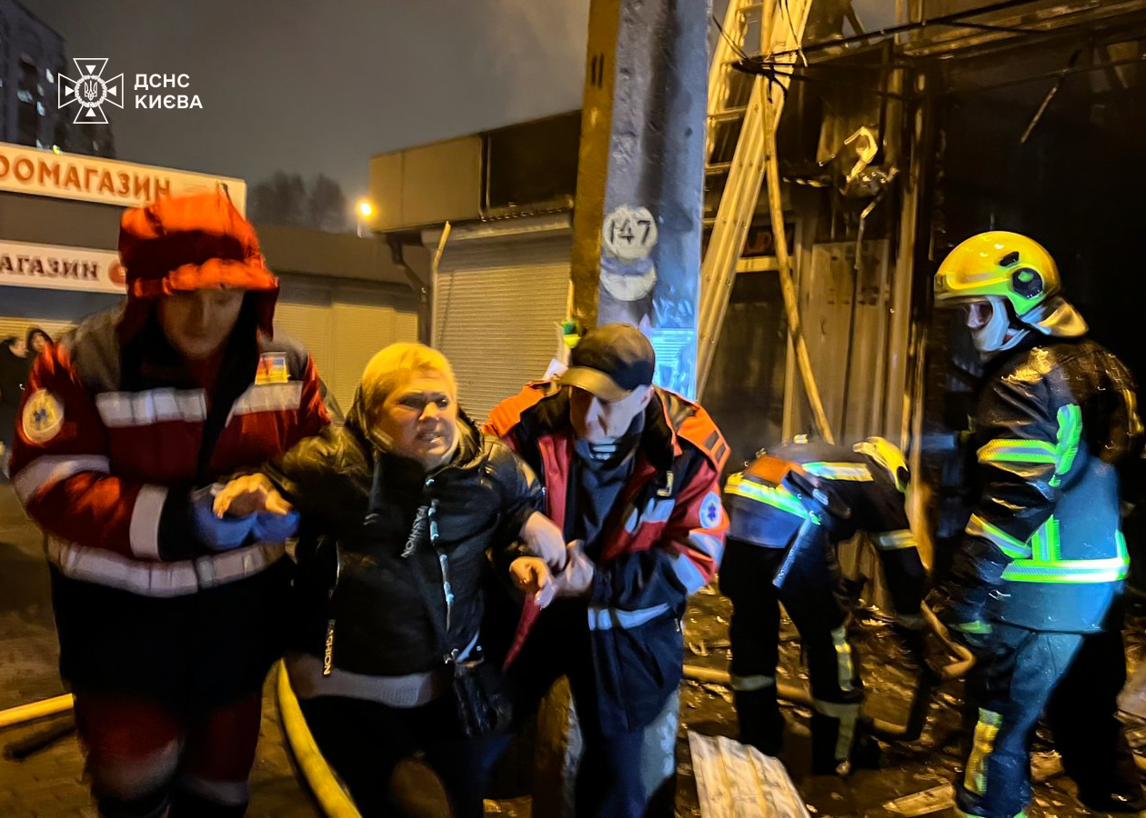 У Дніпровському районі Києва внаслідок пожежі на ринку постраждали двоє людей.