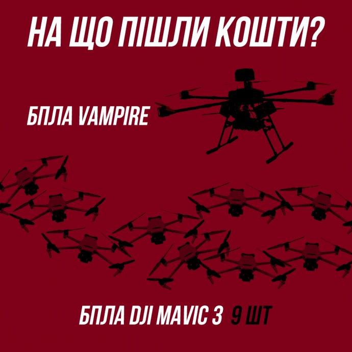 Левова частка коштів – донати читачів та глядачів "Української правди". Також до зборів долучався і великий бізнес – 6 291 045 грн. Ще 470 000 грн зібрали топ-менеджери з CEO Club. Безпосередньо редакція "Української правди" перерахувала 651 764 грн від продажу квитків на власні заходи. Аукціон до дня народження онлайн-видання зібрав ще 2 229 337 грн. Гроші були витрачені на міномети для 48 ОШБ та РЕБ для 3 ОШБ і 102 бригади ТРО.