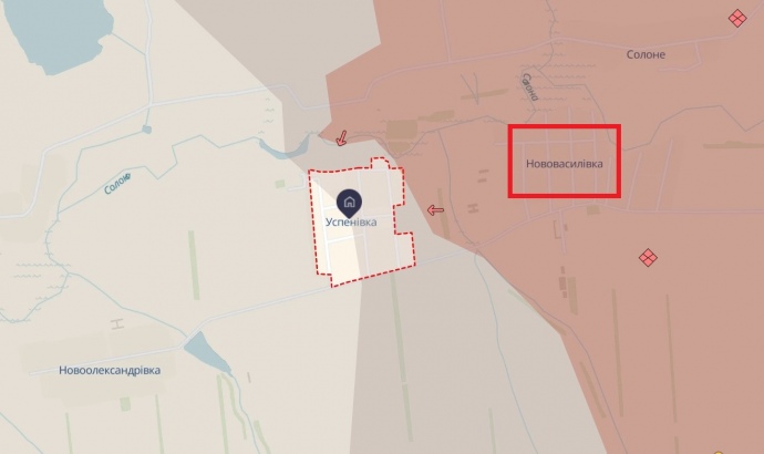 Проєкт DeepState повідомляє, що оборонна операція у Нововасилівці Донецької області завершена, бо село окупував ворог.