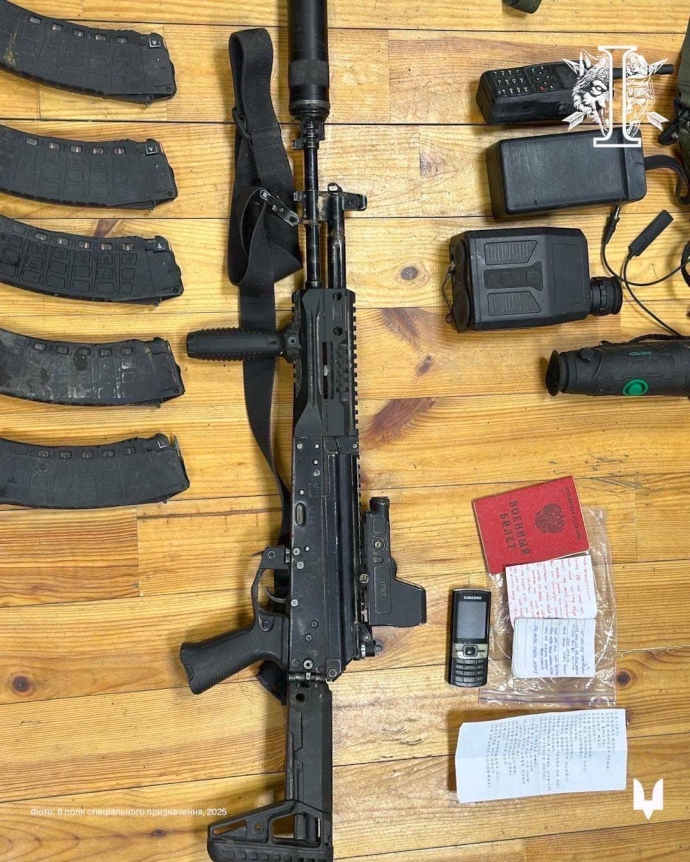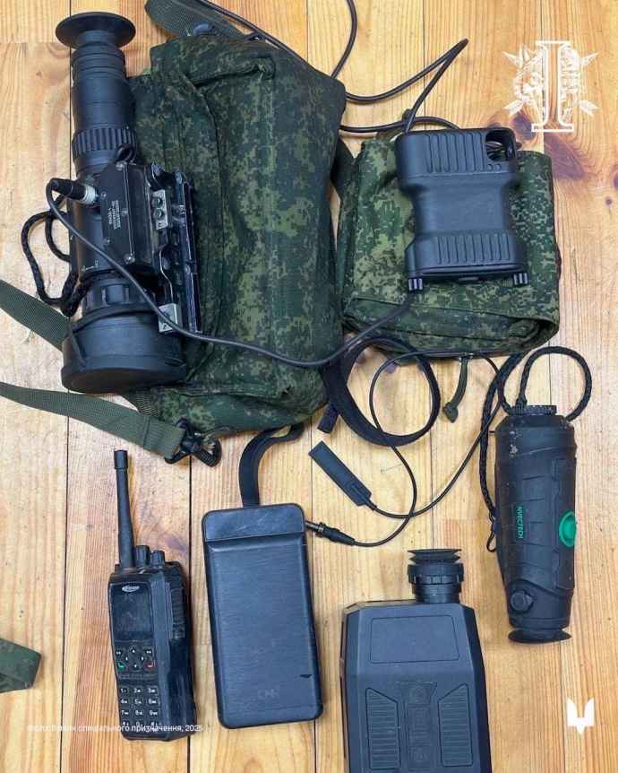 Також оператори на ворожих позиціях виявили і захопили: засоби індивідуального захисту та військову екіпіровку окупантів, далекомір "ДЛ-5", тепловізійний приціл "1ПН139-1", штурмову гвинтівку АК-12 з прицілом "1П87", засоби зв’язку, які можуть містити дані про пересування та плани ворога. Крім того було знайдено документи ворога.