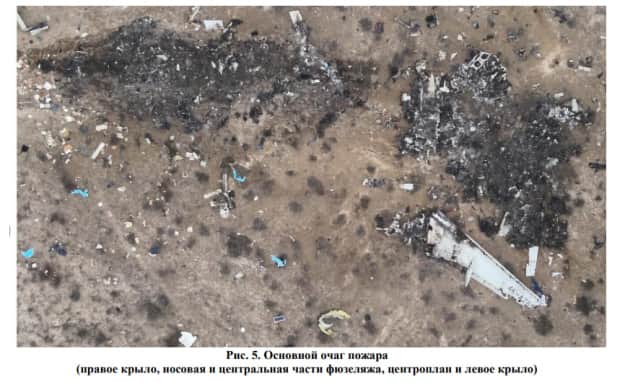 Звіт свідчить, що після початкового огляду фрагментів, які збереглися після авіатрощі літака Azerbaijan Airlines, було виявлено безліч наскрізних і ненаскрізних пошкоджень різного розміру та форми у хвостовій частині фюзеляжу, кіля та стабілізатора, рулів висоти та напрямку.
