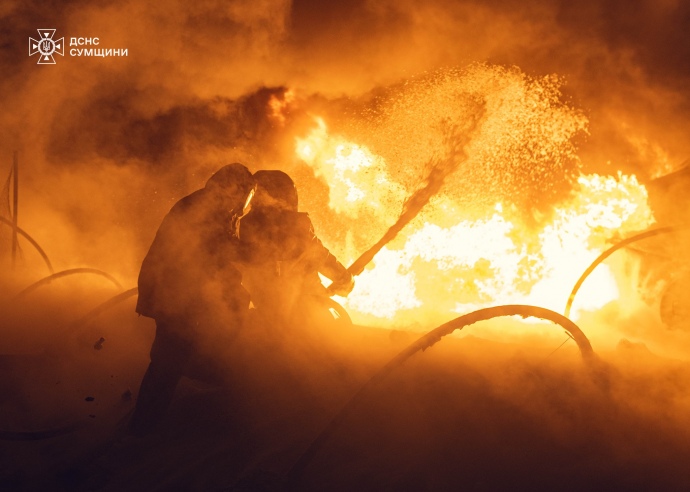 На Сумщині рятувальники ліквідували масштабну пожежу на об'єкті інфраструктури після ворожого удару окупантів.