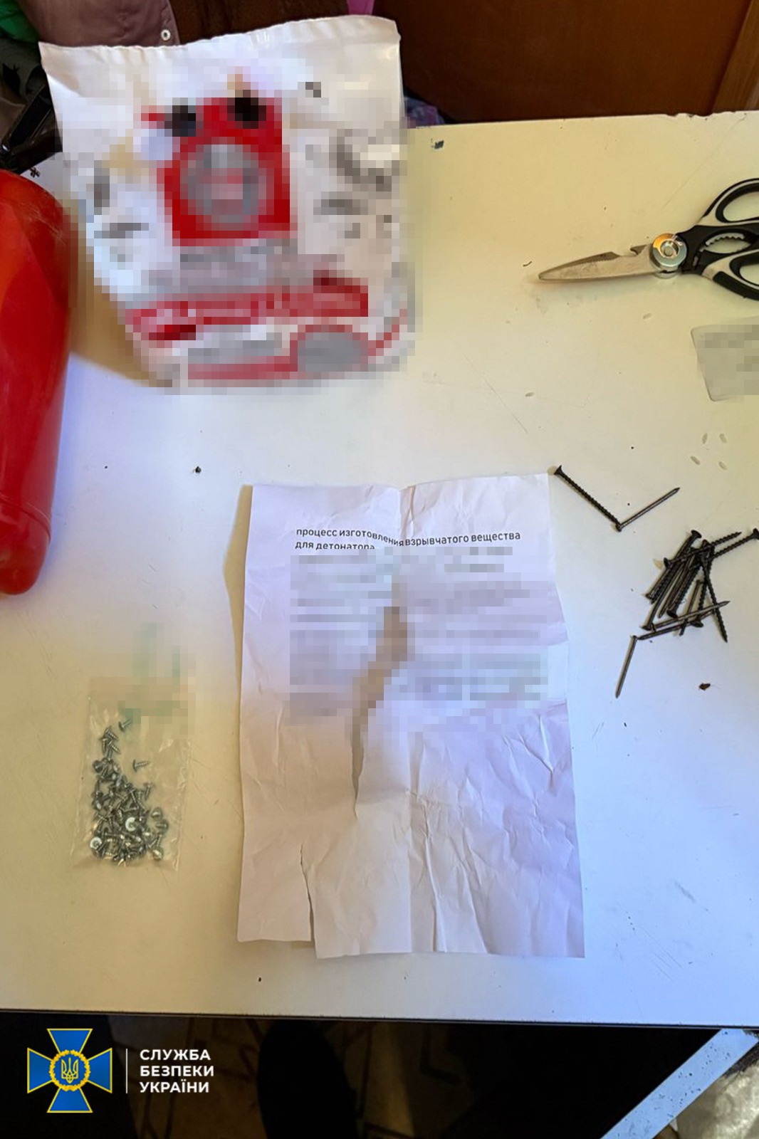 СБУ повідомляє, що пара за вказівкою російської ФСБ оселилася в хостелі під Києвом та почала готувати саморобний вибуховий пристрій. Для цього вони придбали хімічні компоненти для синтезу вибухової речовини, а також металеві болти та алюмінієву стружку. Зловмисники планували заховати вибухівку у вогнегаснику.