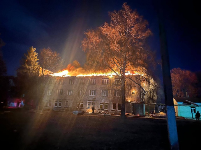 Пряма мова очільника області: "Близько півночі ворог вдарив по лікарні в Золочеві. Внаслідок влучання БпЛА загорівся дах. Через 40 хвилин ворог завдав повторний удар двома БпЛА".