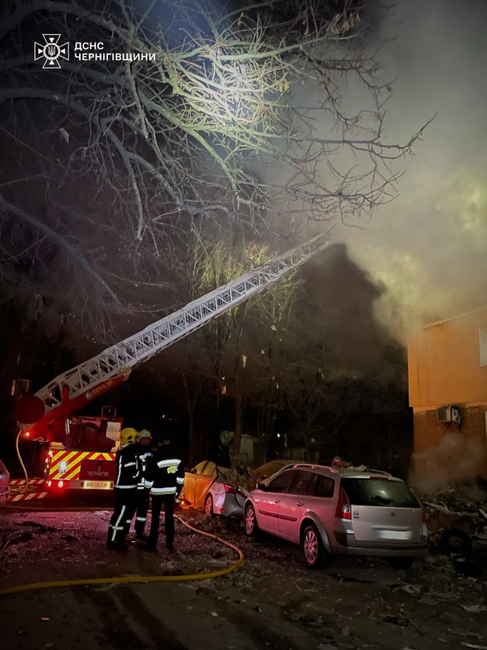 Дослівно: "Рятувальники ліквідували пожежу в багатоповерхівці у Чернігові. Розбір завалів продовжується".