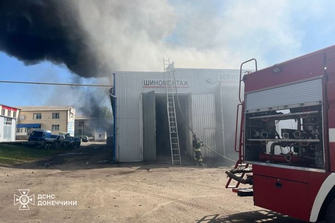 Одна людина дістала поранення та горіли СТО, складське приміщення та 6 авто внаслідок російського удару дронами по місту Слов’янськ на Донеччині.