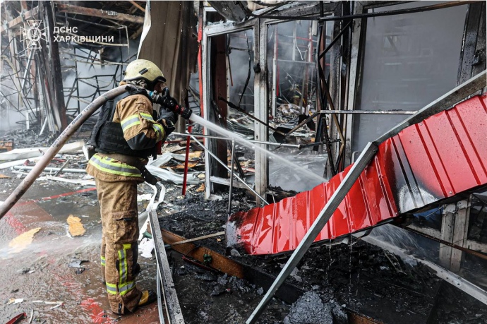 Внаслідок російського удару по Харкову горів найбільший ринок міста "Барабашово", а також пошкоджено житлові будинки і автомобілі, в області внаслідок обстрілів постраждали 11 людей.