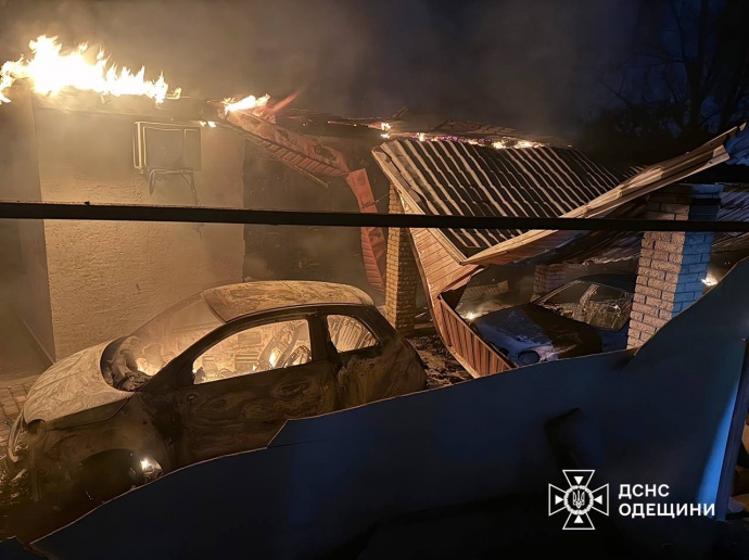 Пряма мова: "Вночі росіяни ударили по Одеському та Білгород-Дністровському районам. Внаслідок атаки пошкоджена цивільна інфраструктура, зокрема житлові будинки та легкові автівки. У кількох місцях спалахнули пожежі, які оперативно ліквідували наші рятувальники".