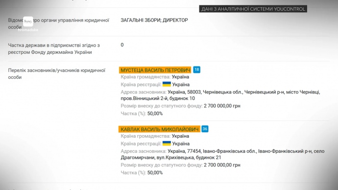 Василь Мустеца також володів частками в низці інших компаній. Із 2021 по 2024 рік його офіційний дохід зріс із понад 1 мільйона гривень до понад 4,5 мільйона гривень на рік.
