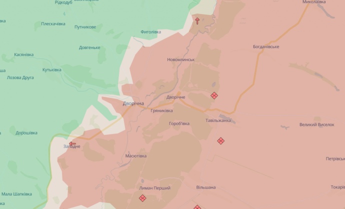 За даними моніторингового проєкту DeepState, за минулу добу російські окупанти зайняли селище Дворічна Харківської області.