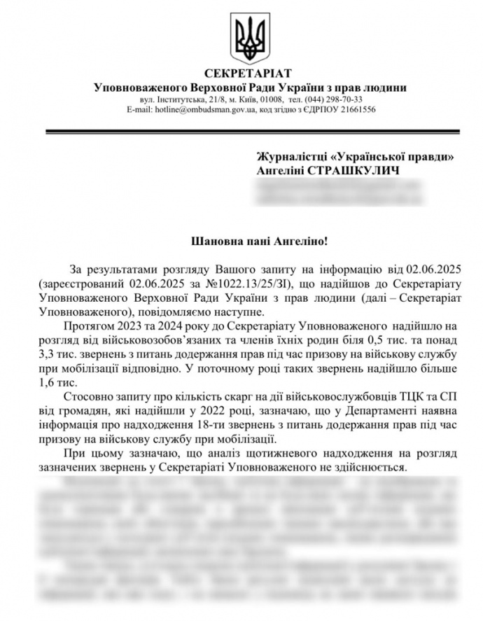 Джерело: відповідь секретаріату омбудсмена на запит "Української правди", опублікована в статті "Пункт збору. Як працюють "розподільники" ТЦК і чому в армію потрапляють непридатні"