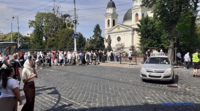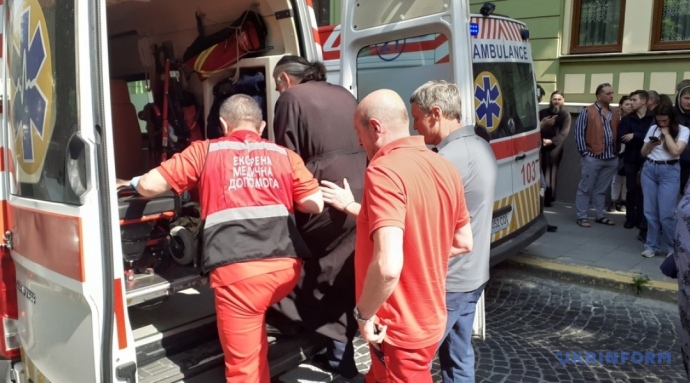 На вулицю Кафедральну біля храму приїхали два автомобілі швидкої допомоги. Медики розповіли, що наразі по допомогу звернулися 5 осіб. Люди мають ушкодження різного характеру.