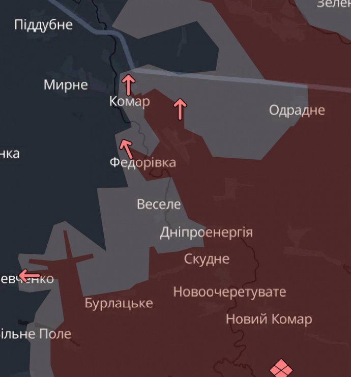 Дослівно: "Мапу оновлено. Ворог просунувся біля Кліщіївки, Дачного, Торецька, Федорівки та Шевченка".