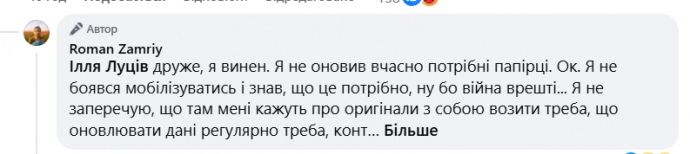 Дослівно ТЦК: "Коментар щодо публікацій в соцмережах Романа Замрія: