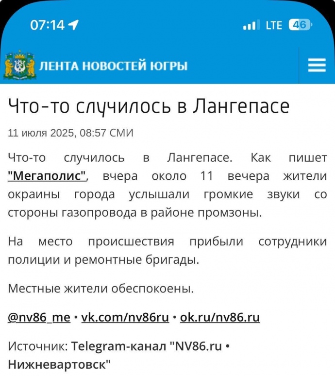 Деталі: За словами джерела, ввечері 10 липня в російському місті Лангепас у Ханти-Мансійському автономному окрузі Тюменської області РФ відбувся потужний вибух з подальшою масштабною пожежею.