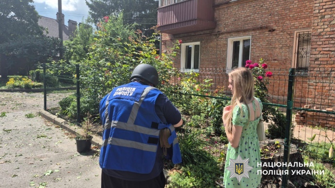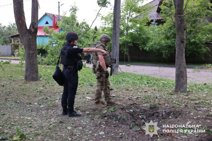 Деталі: Унаслідок удару постраждали двоє місцевих жителів, зокрема семирічна дитина. Обоє отримали тілесні ушкодження та перебувають у стані стресової реакції.