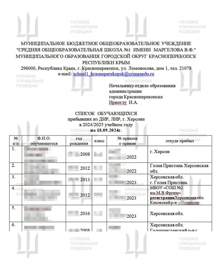 Дослівно розвідка: "У межах масштабної кібероперації розвідники отримали доступ до серверів так званого "уряду Криму". На цих ресурсах зберігалася документація, що підтверджує насильницьке переміщення дітей з тимчасово окупованих територій Херсонської, Запорізької, Донецької та Луганської областей України".