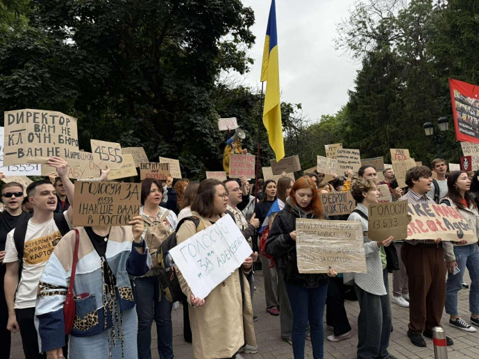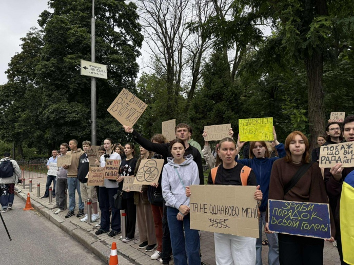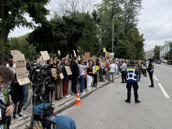 Українці також скандують: "Приймайте закон", "Влада – це народ", "Ми все бачимо" і "Ганьба".
