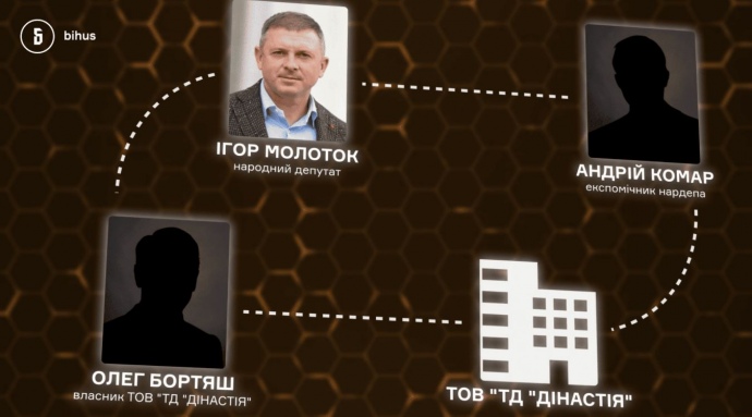 Дослівно: "Близько 126 мільйонів гривень на облаштування оборонних рубежів у Сумській області отримала компанія ТОВ "ТД "Дінастія". Зокрема, для цих робіт вона закупила на понад 40 млн грн матеріалів у компанї "Шостстройресурс". Цю фірму згодом записали на 90-річну матір нардепа Ігоря Молотка.