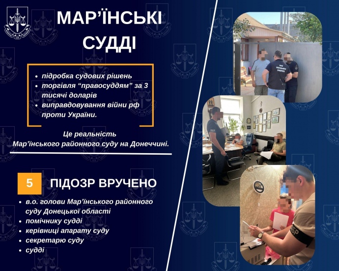 В. о. голови суду, помічнику судді, заступнику керівника апарату та секретарю суду повідомлено про підозру у: