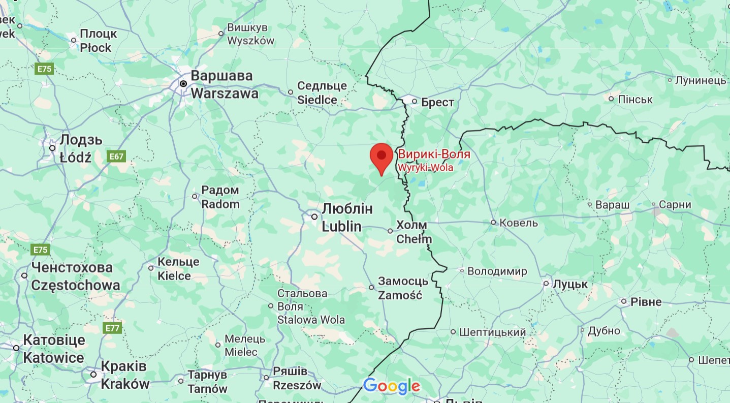 У Польщі повідомили про падіння дрона на житловий будинок в селі Вирики-Воля неподалік кордону з Білоруссю після нальоту безпілотників.