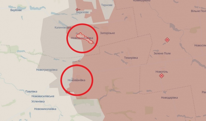 Дослівно: "Мапу оновлено. Ворог окупував Новомиколаївку та Новоіванівку, а також просунувся поблизу Калинівського, Тернового та Новоіванівки".