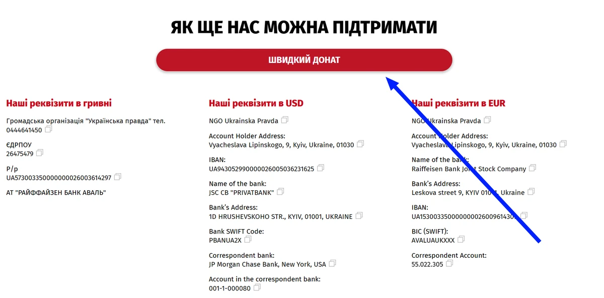 - Натиснути кнопку "Швидкий донат"