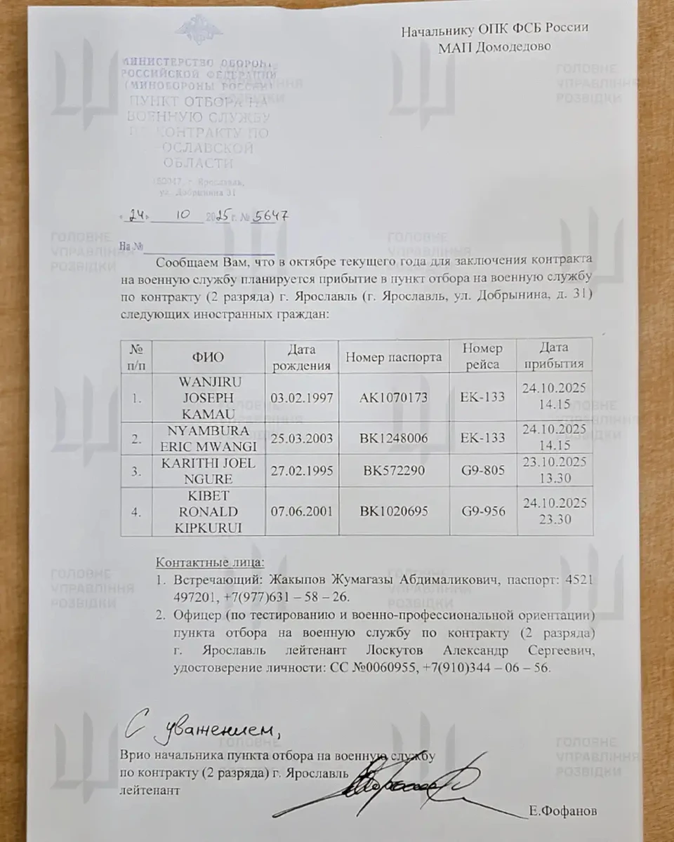 Дослівно ГУР: "Попри досягнуті домовленості Кремля з окремими африканськими країнами щодо припинення вербування їхніх громадян, цей процес не зупинився та триває — встановлено персональні дані 2 965 громадян африканських країн, які уклали контракт зі збройними силами Російської Федерації.