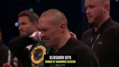 У боксерському протистоянні між українцем Олександром Усиком і британцем Ентоні Джошуа перемогу здобув Усик. У момент оголошення результатів поєдинку українець не втримав сліз від радощів, пізніше він записав відеозвернення.