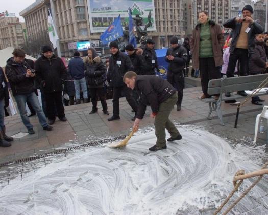 Після відвідування вищим керівництвом країни наметового містечка на Майдані Незалежності деякі активісти вимили площу з милом.