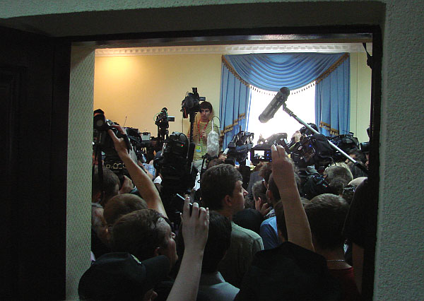 Прохід до суду було заблоковано співробітниками "Беркута", а на вулиці Богдана Хмельницького припаркували декілька автобусів із міліцією.