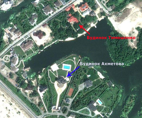 Як стверджує програма "Гроші" каналу 1+1, будинок найбагатшої людини України, депутата Ріната Ахметова знаходиться навпроти маєтку екс-прем'єрки Юлії Тимошенко.