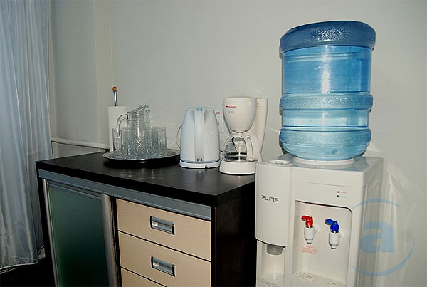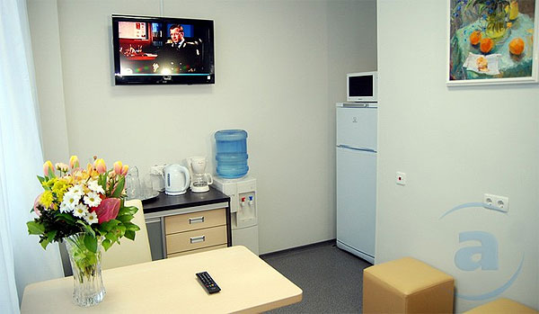 | Кухня: телевізор, холодильник, мікрохвильова пічка, кулер... |